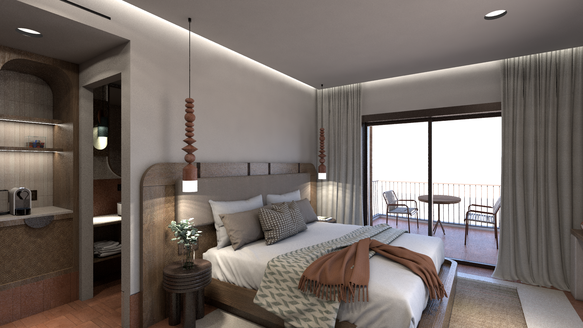 a hyper realistic hotel room