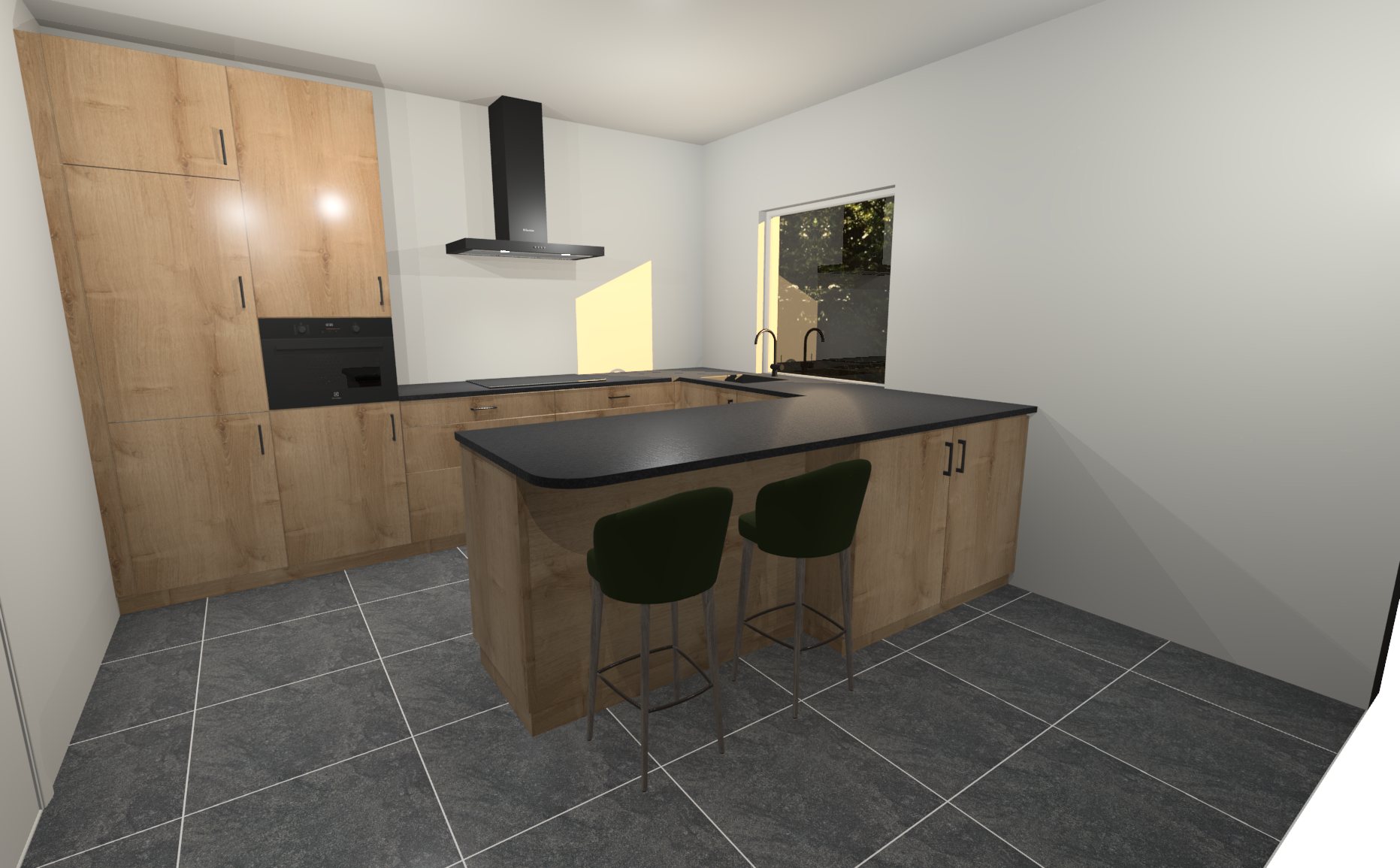 give the room a tile backsplash some plants a painting on the right wall