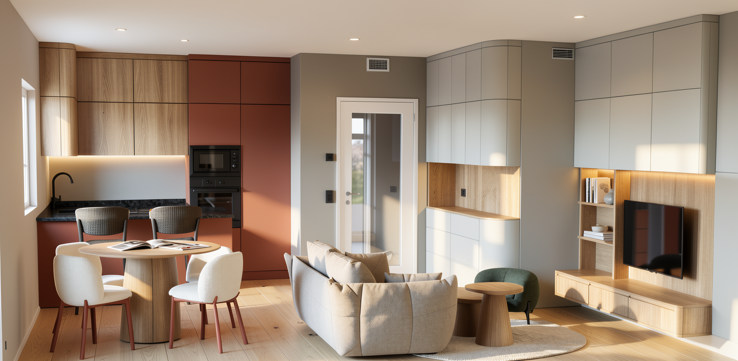 act as a senior architectural visualization artist working in a professional archviz studio your task is to transform the provided 3d interior design drawing into a high end photorealistic architectural render critical constraint the image represents an approved interior design project the architecture furniture geometry colors and materials are final and must not be changed forbidden actions no redesign no reinterpretation no new objects no removed objects no material changes no color changes no layout changes the geometry proportions and camera perspective must remain exactly identical to the original image your task is only to increase realism rendering standards create the image as if rendered using professional architectural visualization engines such as v ray or corona renderer apply physically based rendering pbr global illumination realistic indirect light bounce physically accurate reflections soft shadow gradients realistic ambient occlusion lighting use natural architectural lighting similar to professional interior photography combine soft daylight entering through windows realistic sky illumination subtle interior bounce lighting balanced exposure natural contrast materials materials must appear ultra realistic including wood grain detail natural stone microtexture fabric fibers metal reflections realistic roughness variation subtle imperfections camera maintain the original camera position use interior architectural photography style 24 35mm lens correct perspective natural depth perception post processing professional photographic finishing subtle color grading realistic dynamic range balanced white balance gentle vignette crisp sharpness output requirements ultra photorealistic luxury real estate marketing quality extremely sharp details no noise no stylization no illustration look resolution ultra high resolution 8k rendering quality goal the final result must look indistinguishable from a real professional photograph of a finished interior all images belong to the same interior project ensure visual consistency across all perspectives lighting conditions must remain identical material appearance must remain identical color balance must remain identical white balance must remain identical the room is the same environment photographed from different camera positions interior daylight scene consistent lighting setup