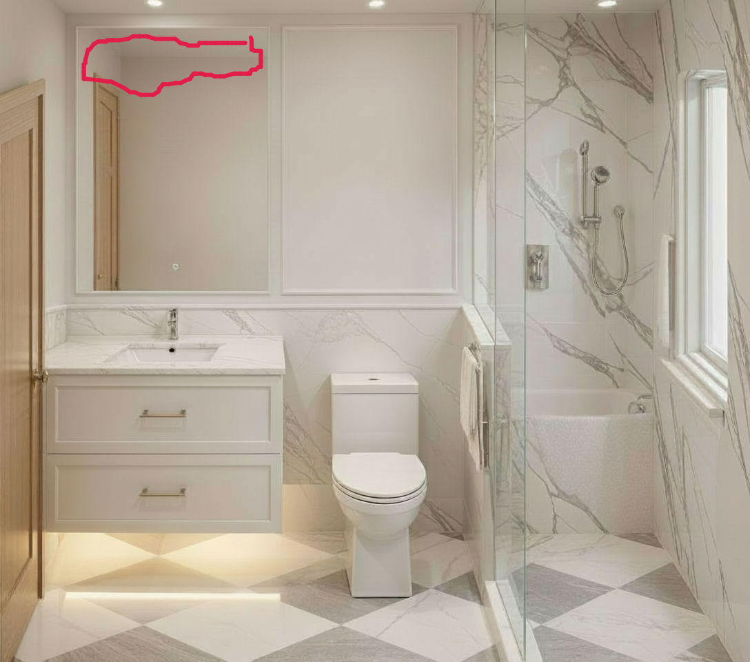 add wide polished nickel wall sconce over vanity mounted to mirror follow sketch