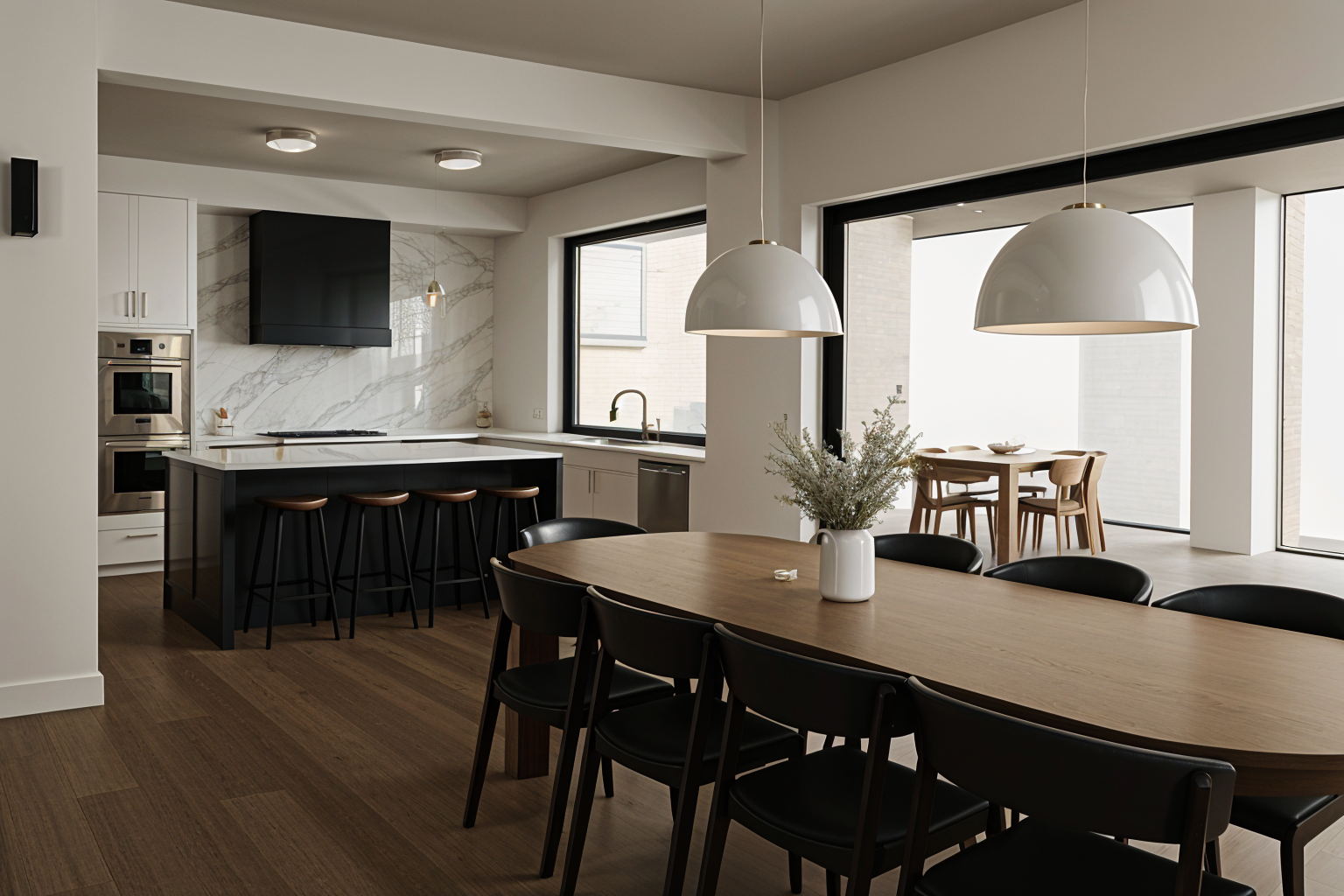 a 2 story apartment with 4 units on the ground floor and 4 units on the second floor with exterior corridor at front on the second floor and stair access at each end use modern style architecture with gray and wood tones and black steel