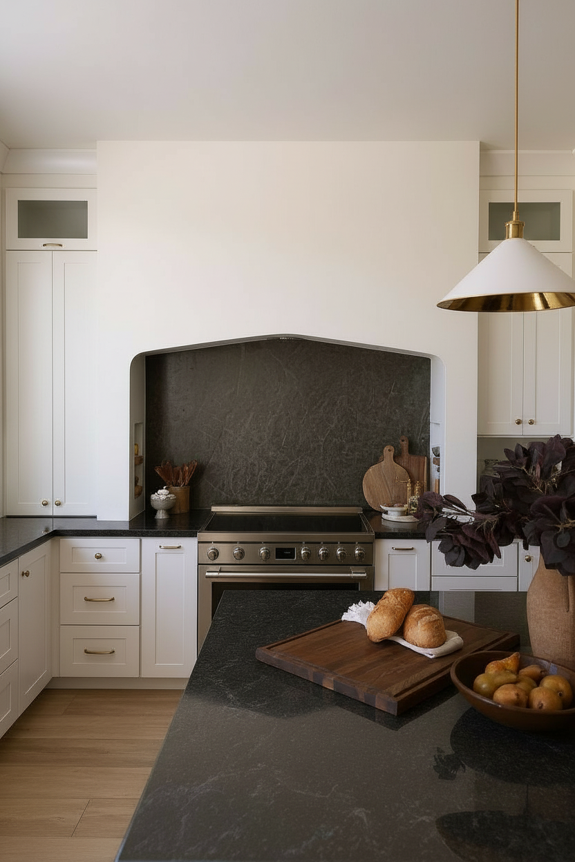 get rid of the food and plant on the countertop lets also make the cabinets on both sides the same size