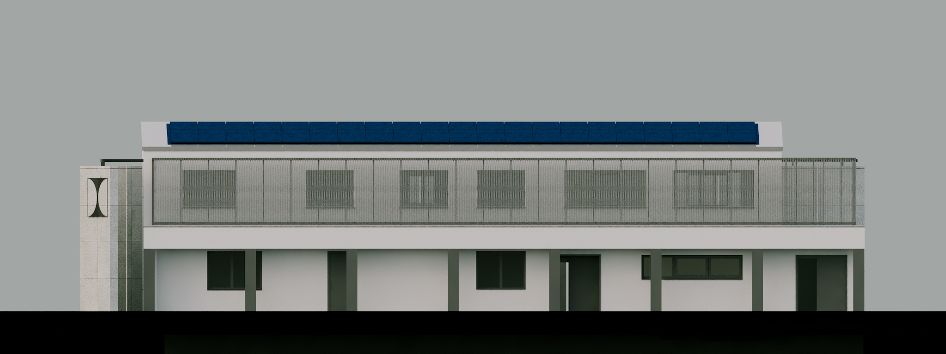 office building in industrial area summer time clear sky sunny day preserve textures