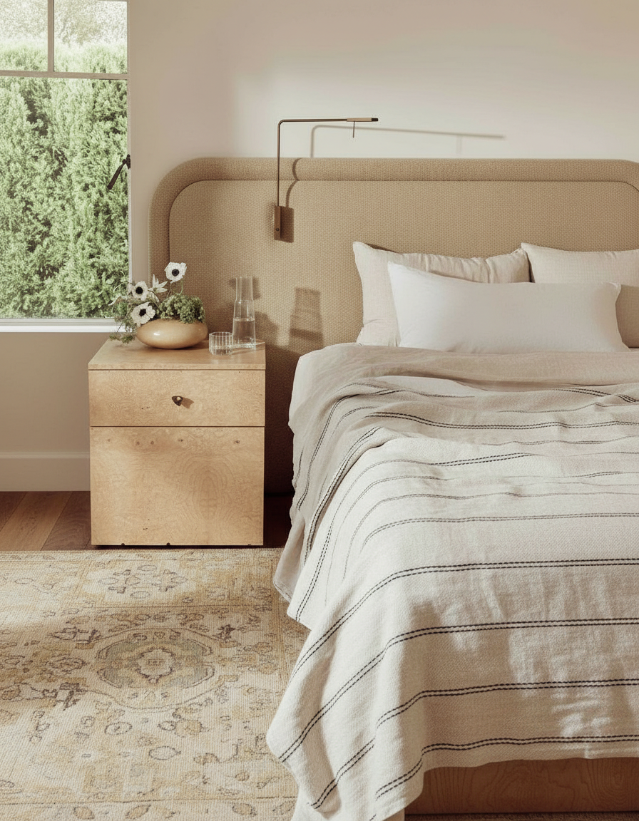 render the entire bed on a white background keep the rustic linen texture of the bed throw