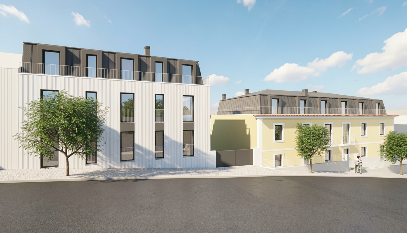 faz imagem hiper realista coloca um c u de ver o tirar o brilho do asfalto a fachada amarela passa a caf com leite