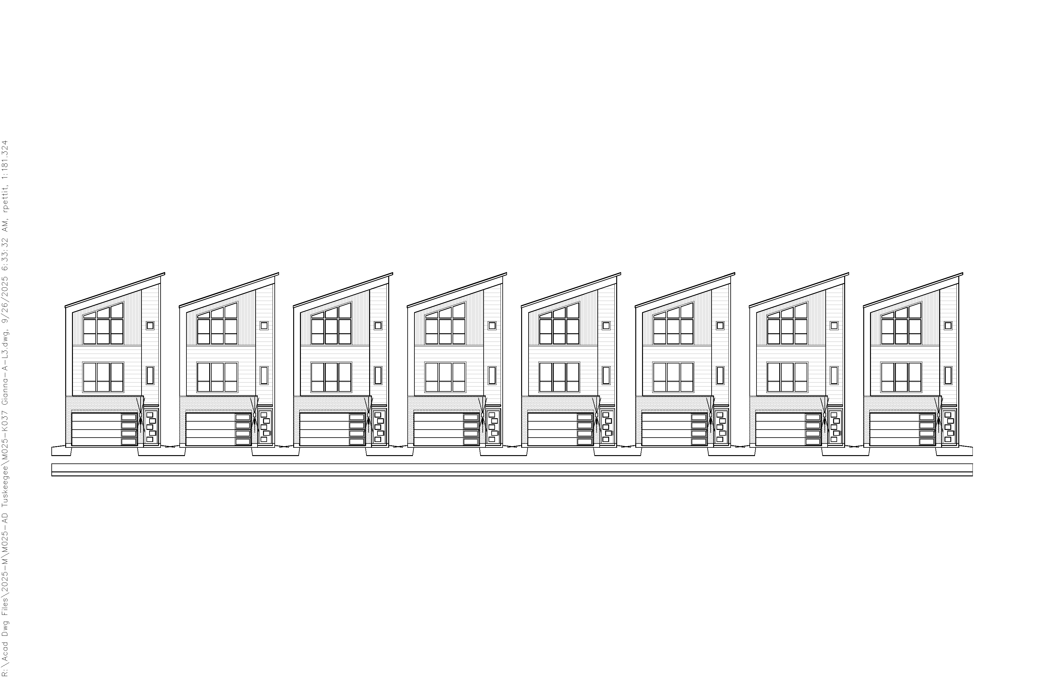 exterior shot render a modern row of houses with sloped roofs use a soft pastel color palette for the buildings with light gray for the walls white for the trim and pale blue for the roofs add large glass windows that reflect the sky incorporate small well manicured front gardens with lush green grass and a few colorful flower beds in shades of pink and purple the atmosphere should be serene and inviting with a clear blue sky and soft sunlight casting gentle shadows this is an urban environment not a forest