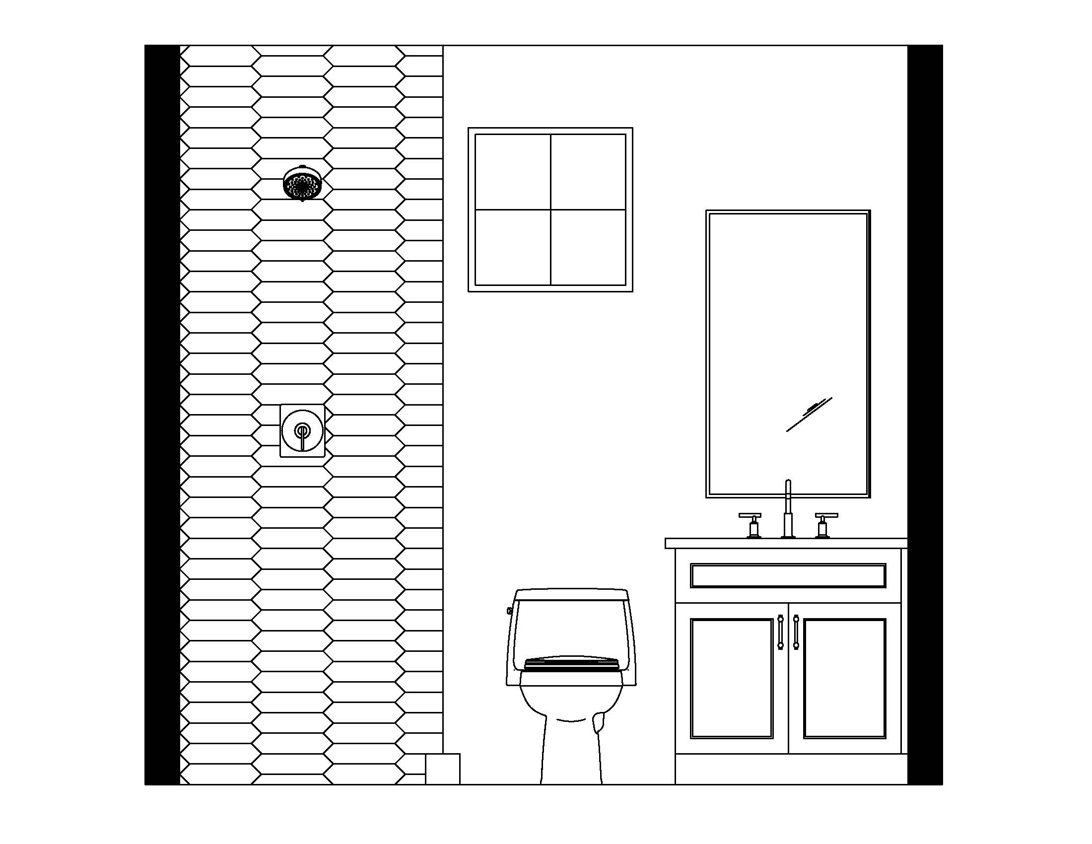 exterior shot blue tile wood cabinet