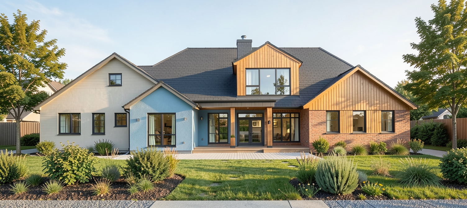 add dark stone where blue paint is shown remove dormer window