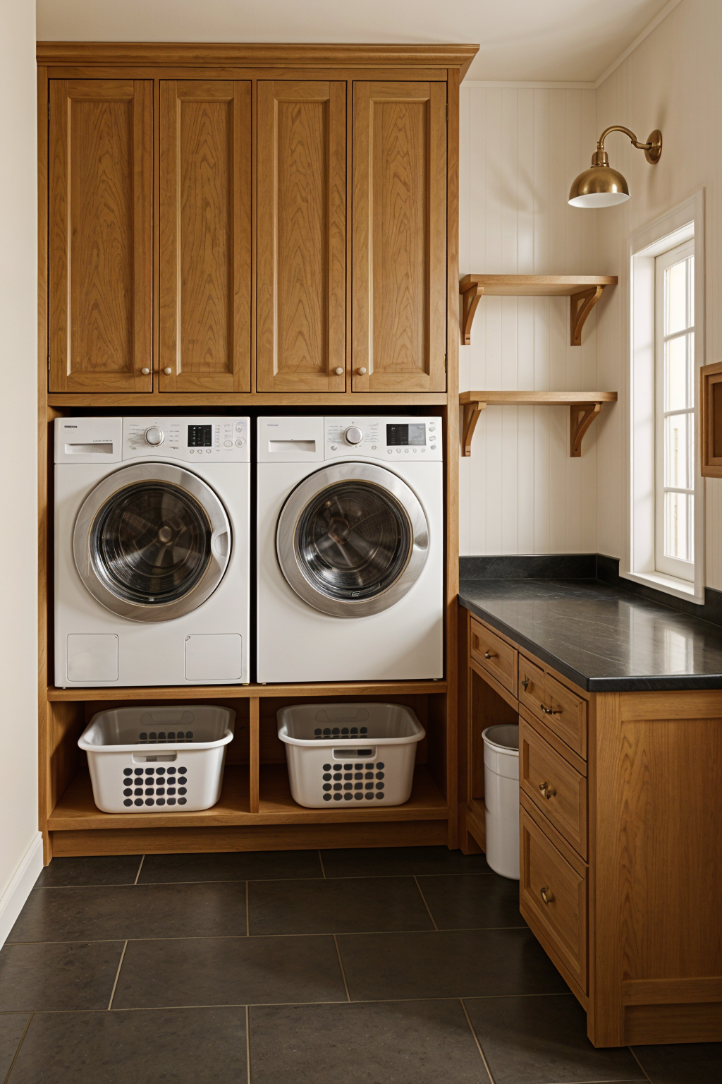add an undercounter fridge in the opening on the right add a microwave in the base cabinet opening on the left stage the countertop and floating shelves for a bar and tidy up the floor to remove the tape