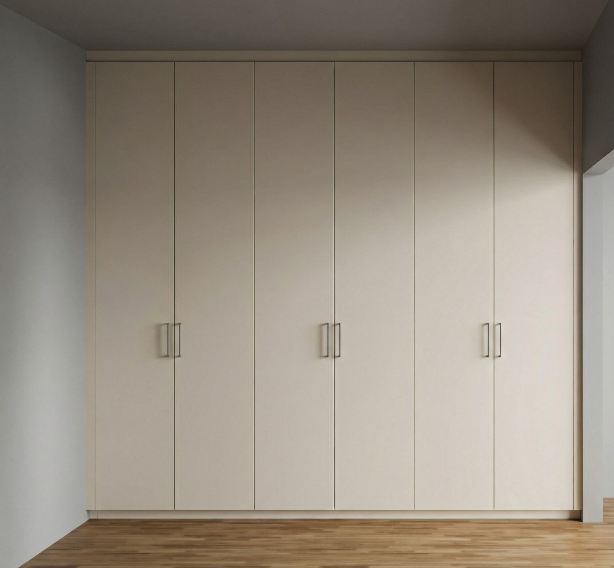 its golden hour and shadows have formed inside on the floor and there is a slightly pink tone in the sky the house is part of a row of terraces which look exactly the same make the materials realistic and soft without too much variation