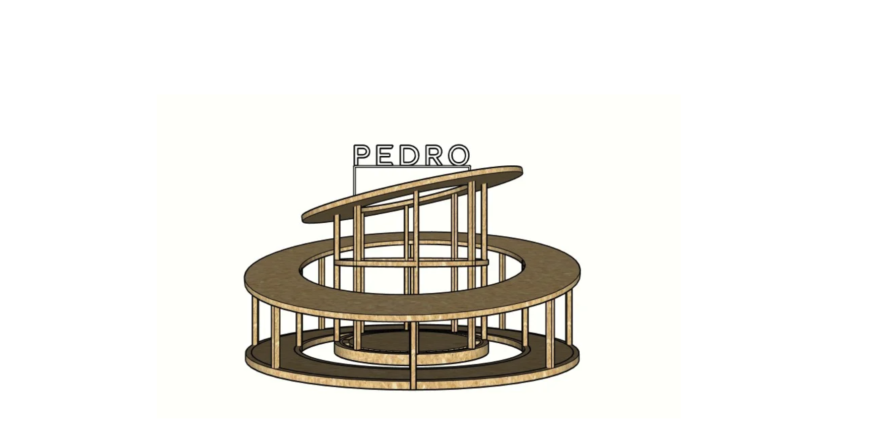 use the 3d rendering of the pedro circular light wood fixture as the base keep the entire circular structure intact including the cylinder shelving but ensure the shelving remains visible and not overpowering in the central opening create a tall organic floral arrangement inspired by dried grasses and wildflowers dense clusters of wispy grasses mixed with vibrant purple blossoms bright yellow accents warm orange tones crisp white flowers and lush green foliage the leaves should be long slender and airy blending naturally with the rustic floral vibe make the arrangement photorealistic as if it is growing organically from the middle gap change the surrounding green and grey cylinders to a warm brown tone around the fixture build a garden like environment with tree trunk bases and organic plant groupings echoing the natural aesthetic of the floral reference all set within a clean white space to highlight the installation