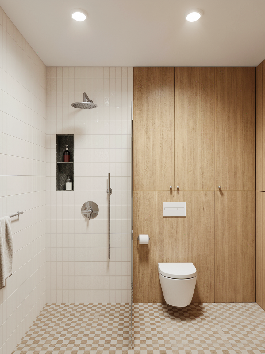 a highly photorealistic high resolution 3d render perfectly replicating the perspective composition light and all elements of the interior salon scene including the light pistachio green walls grey wood flooring ceiling track lighting potted plant both teal textured salon chairs the central door and the shelving unit with its specific products and wooden drawers the mirrors in the scene must reflect the newly modified back area with total accuracy the entire wall surface visible through the reflections of both the left and right oval mirrors is completely covered in vescom s palena 1070 17 wallpaper displaying its specific woven textured pattern within the reflection of the right mirror only the entire counter top front and sides visible in the reflection is now clad in small matte the same color all other elements of the counter and the wider reflected space remain the ou ty salon text and associated lines on the right mirror s surface are perfectly preserved the wall mounted lamps and outlets are in place the overall lighting remains directional but now interacts realistically with the new wall texture and tile surfaces in the reflection