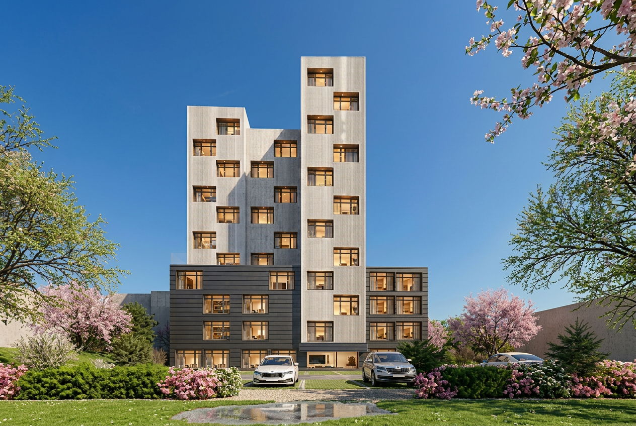 add half reflection of letnany 10 storeys high housing estate to windows only
