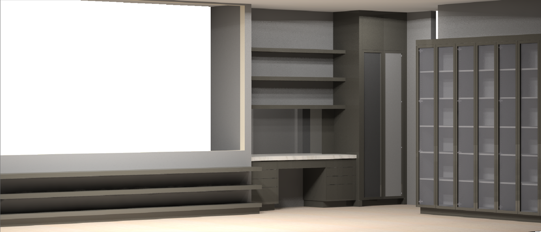 add leds in cabinets add decorations add shoes in bottom shelves