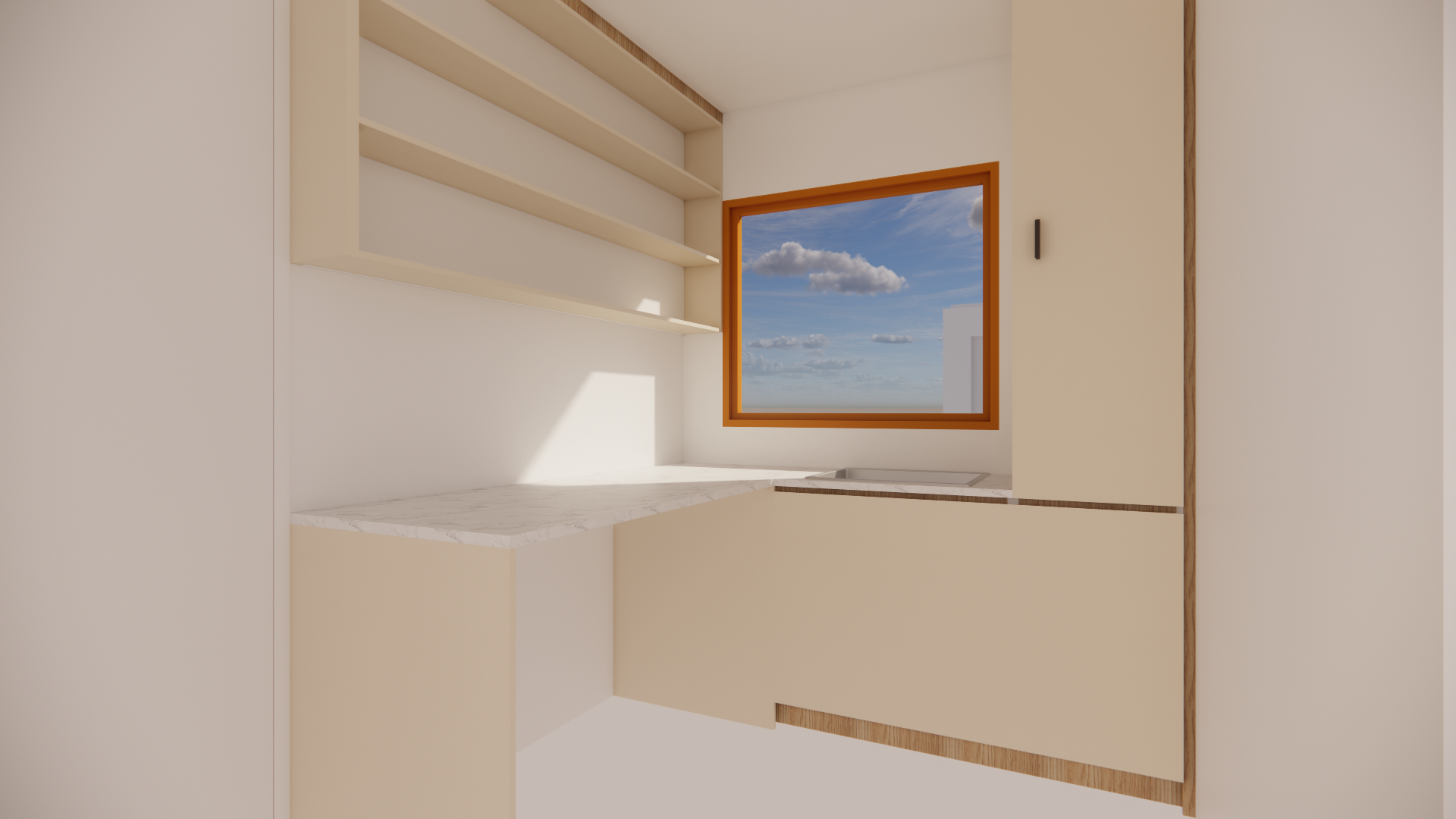 photorealistic render the following image with keeping te materials the same make it more interesting as a laundry in the open are add washing machine and dryer side by side on the left opening
