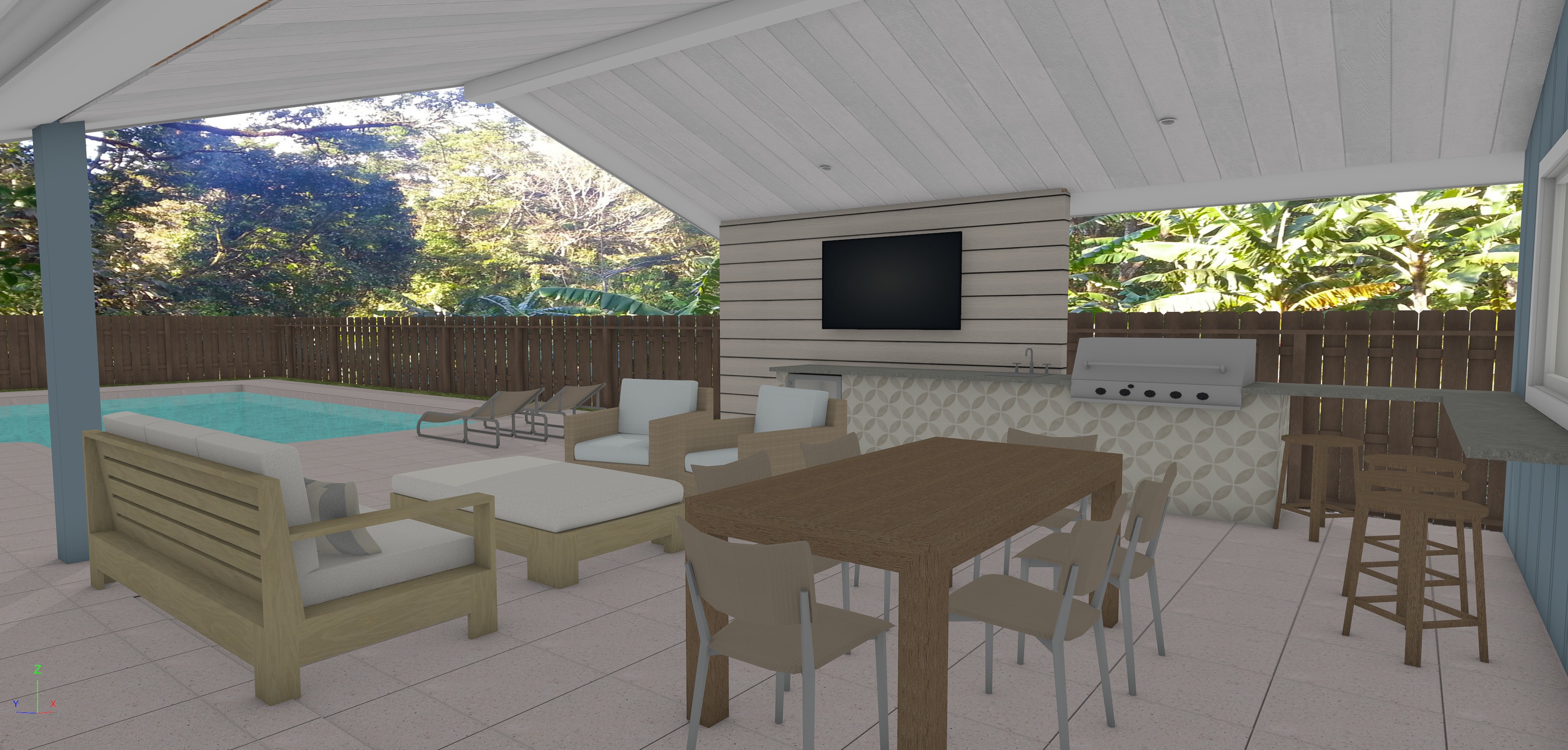 make this rendering look like a real photograph it is mid day pavers are white concrete shellstone