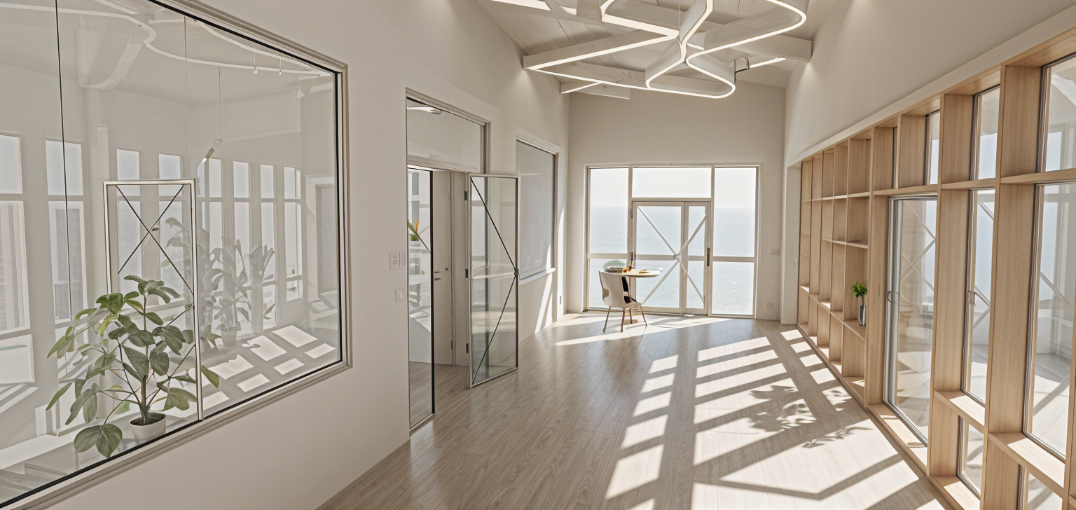 contemporary interior shot creative ultra modern design in light colors of the office lobby suspended creative ceiling with led lighting architecture