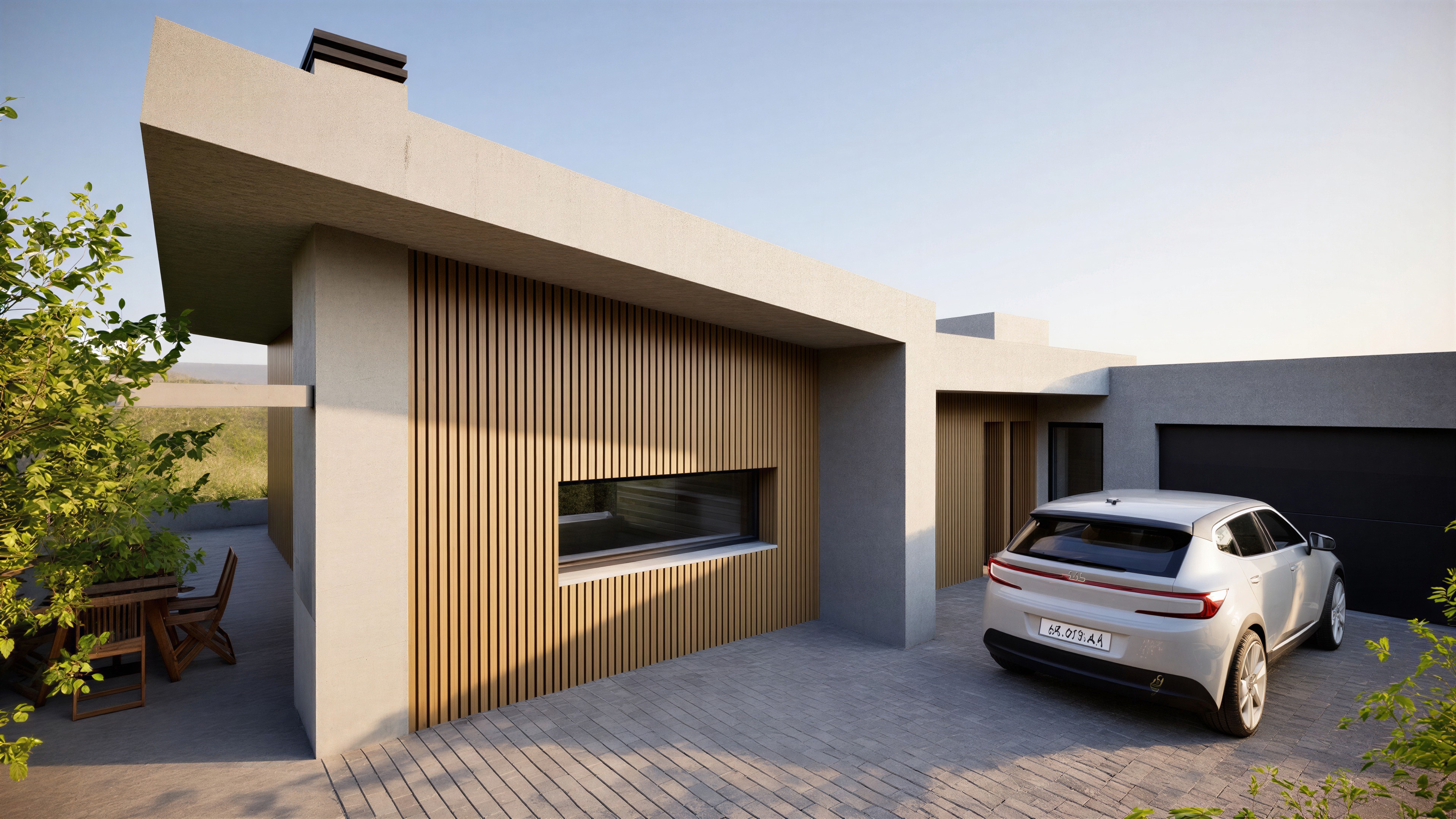retira o ripado em madeira na fachada e coloca material igual s restantes paredes