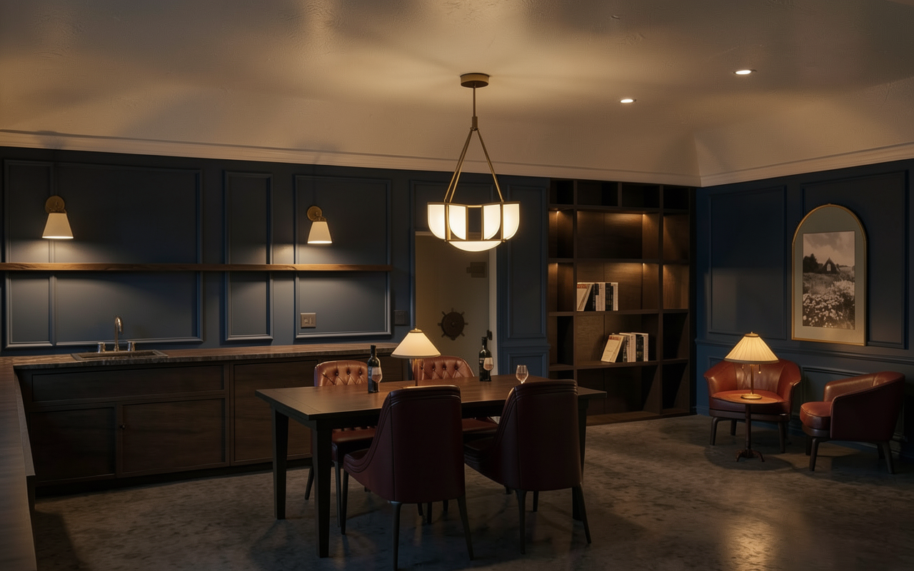 add navy blue panelling to walls warm lighting and moody remove outlets simply panelling