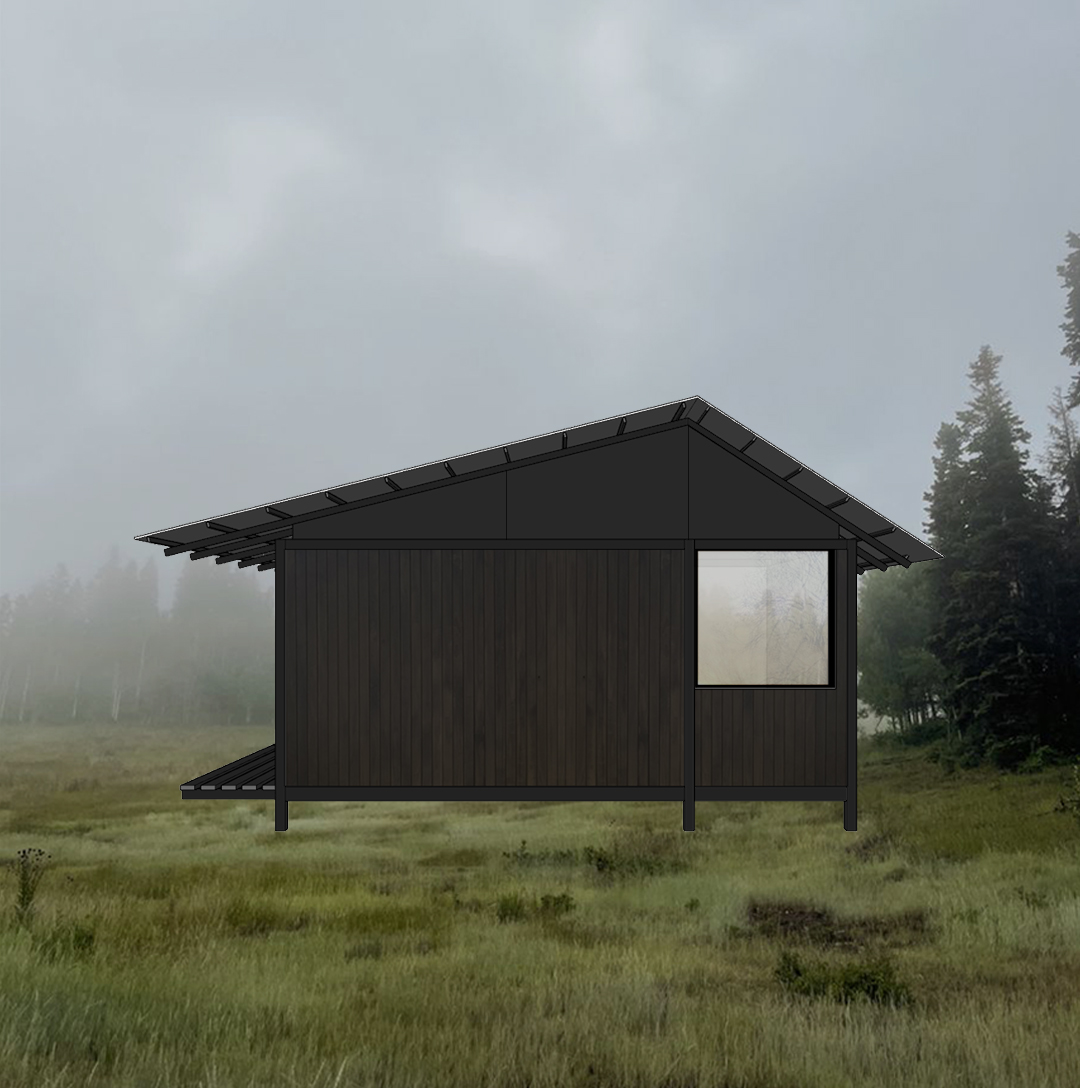 important do not change the geometry proportions or camera position only enhance materials lighting reflections and landscape goal create a high quality exterior architectural rendering that looks like a professional architecture photograph the image should emphasize realistic reflections on the glass refined material textures and a calm natural environment inspired by scandinavian architecture and minimalism the composition should feel balanced natural and harmonious exterior materials structural frame exposed pillars and beams in matte black steel exterior walls black charred wood cladding japanese shou sugi ban style installed vertically window frames black pvc minimal profile exterior deck flooring wide wooden planks similar to oak boards dark wood tone but not black lintels and soffits black plywood panels with visible wood grain dark stained finish landscape natural setting with a mountain in the background with gentle slopes not steep trees surrounding the house integrated naturally with the landscape simple natural terrain and vegetation lighting soft late afternoon light with warm tones subtle warm artificial light coming from the interior and visible through the windows realistic glass reflections and soft shadows rendering style photorealistic architectural photography scandinavian aesthetic natural textures and accurate material rendering calm balanced atmosphere high realism in glass reflections and lighting