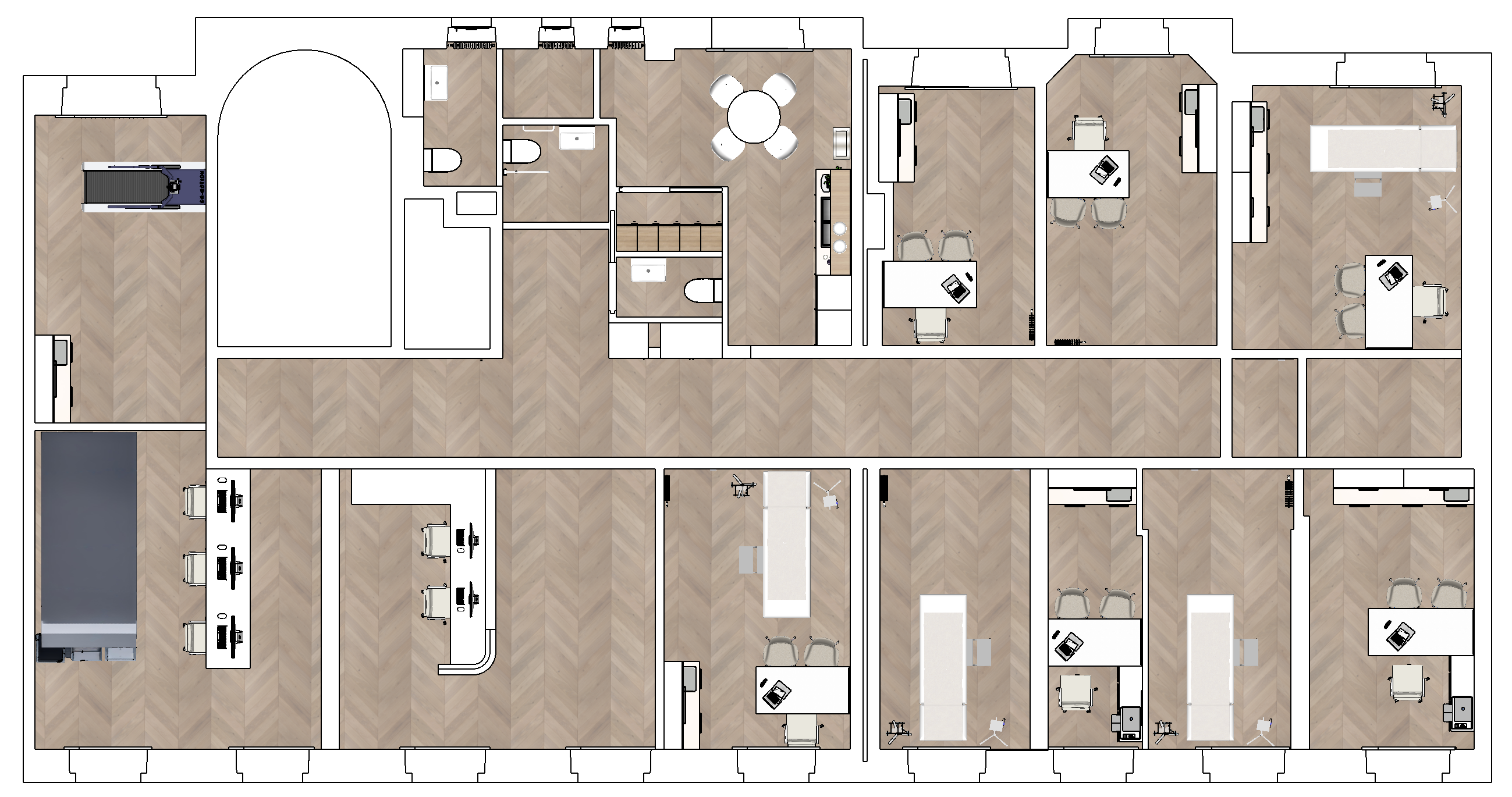 top down architectural floor plan illustration hand drawn watercolor style soft architectural rendering pastel tones light textures artistic interior design plan sketchbook style subtle shadows painted materials soft wood tones minimal linework elegant presentation drawing interior designer concept illustration clean top view no perspective magazine quality architectural illustration