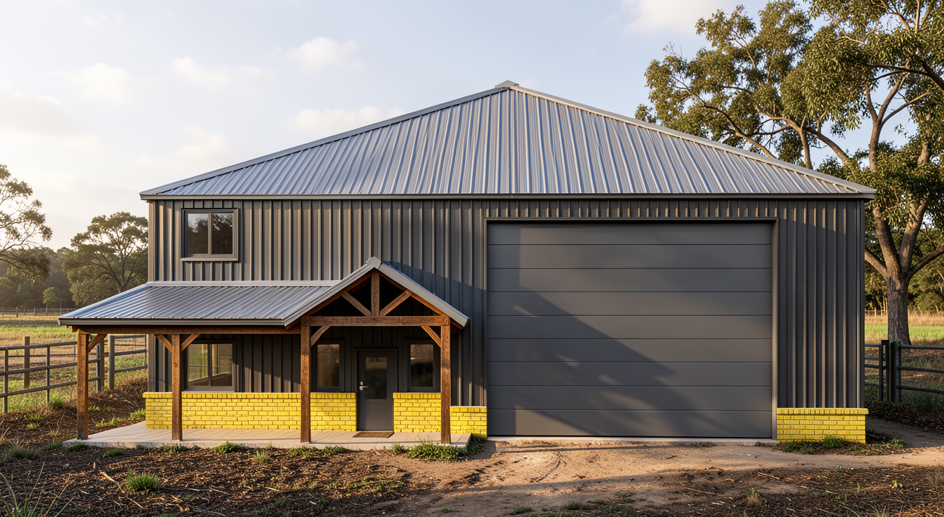 partir de cette image en conservant strictement et sans modification les couleurs bois noir et brun le toit en rev tement m tallique noir et le sens des rev tements visibles sur l image de r f rence ne pas interpr ter ni remplacer les mat riaux teinte texture orientation conserver exactement les volumes et proportions du b timent on voit la maison de dos pas de chemin en facade pas de chemin int grer le b timent dans un environnement naturel cr dible avec une v g tation typique du qu bec utiliser un clairage naturel uniforme et diffus lumi re du jour clairant de fa on gale la maison et le garage avec des ombres douces et un ciel l g rement nuageux