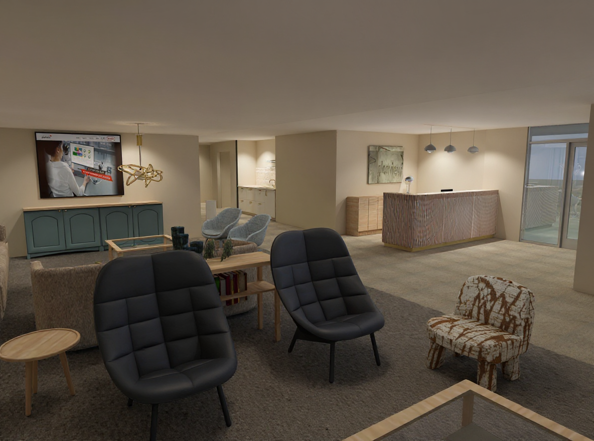add some realistic spotlights under every ceiling change light on facade for realistic light