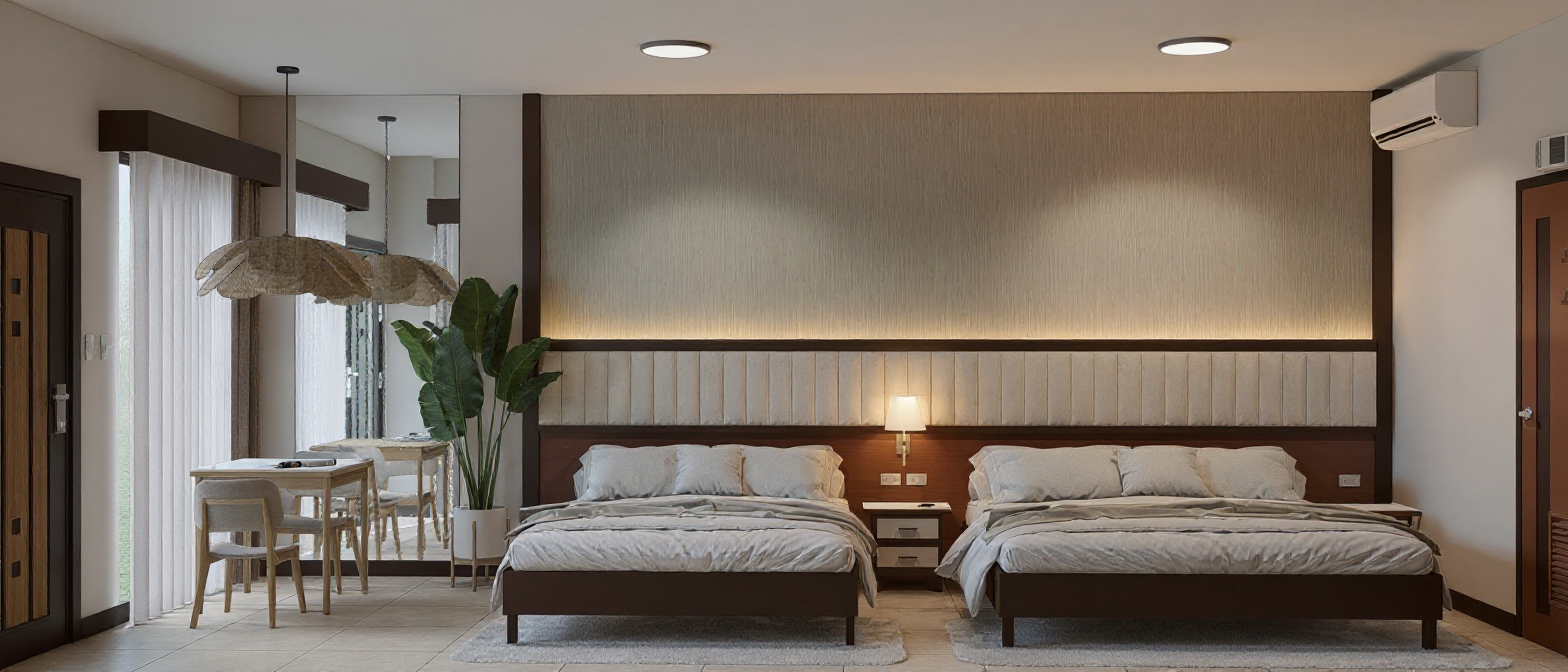 exterior shot convert this image into a realistic 3d architectural render preserve all existing structures angles and proportions exactly as they are enhance the image with professional quality lighting shadows and textures for timber glass and landscaping maintain the original layout and design but make it look polished visually striking and like a high end 3d visualization