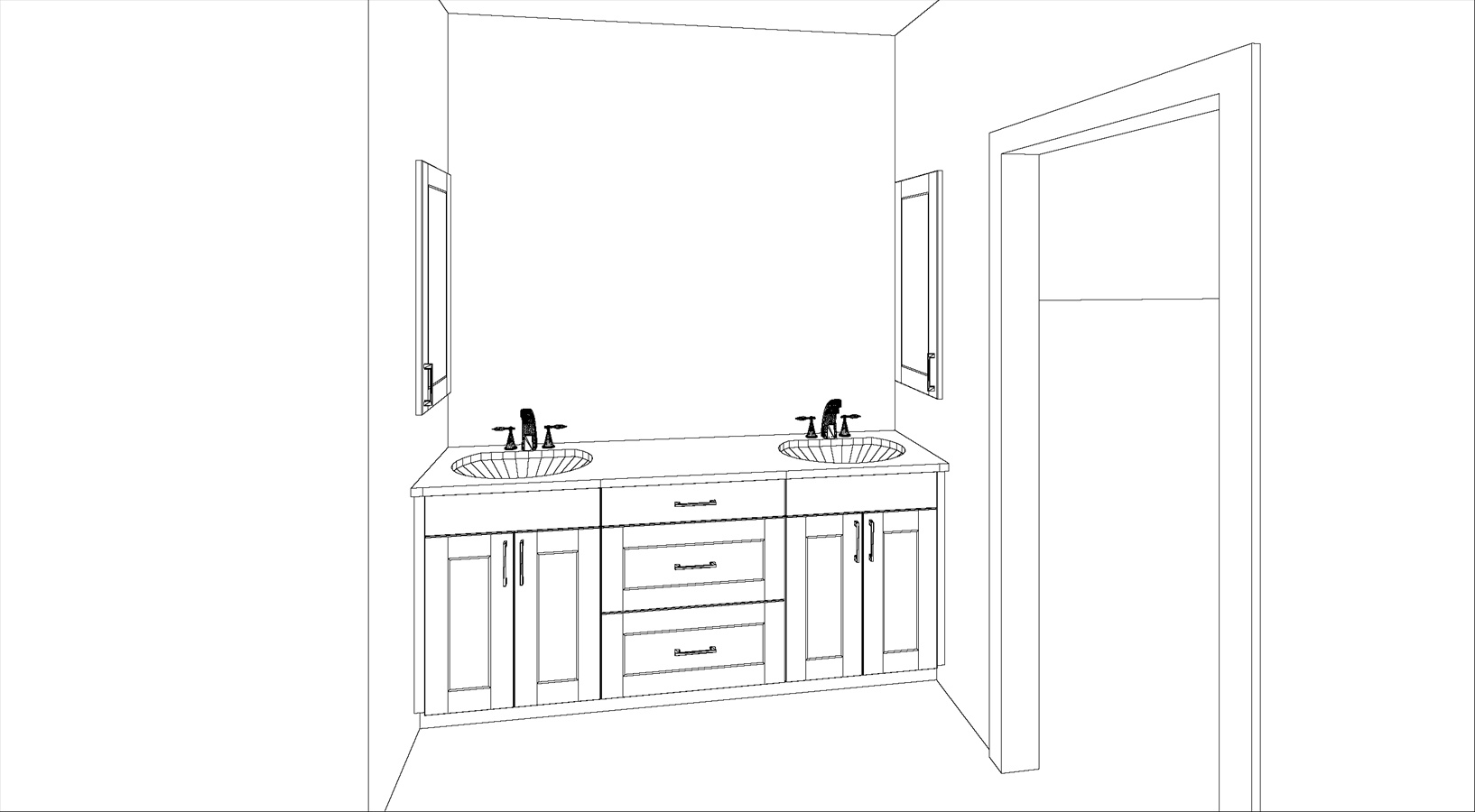 render a modern master bath vanity with bright natural lighting use soft light grey for the walls and white for the ceiling the cabinets should be a sleek matte white with stainless steel handles the countertop should be a polished white marble with subtle grey veining the floor should be a light oak wood giving a cozy atmosphere create an inviting clean and minimalist space with a fresh and airy feel