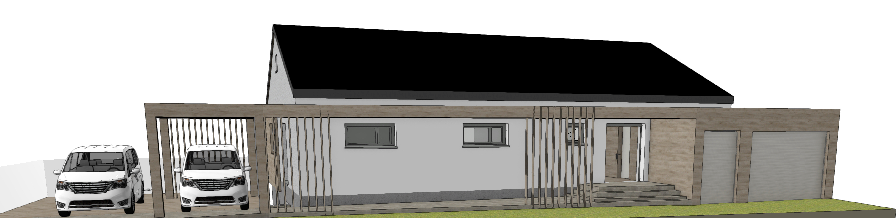erstelle mir eine hochwertige au enansicht des einfamilienhaus im schlehenweg 12 in bad neustadt es soll eine kombination aus holzfassade und heller putzfassade sein das geb ude steht am hang das erdgeschoss ist ebenerdig zug nglich der parkplatz f r die beiden autos ist einmal ein carport und einmal ein normaler stellplatz es gibt keinen b ume um das geb ude es ist ein offenes grundst ck mit guter aussicht