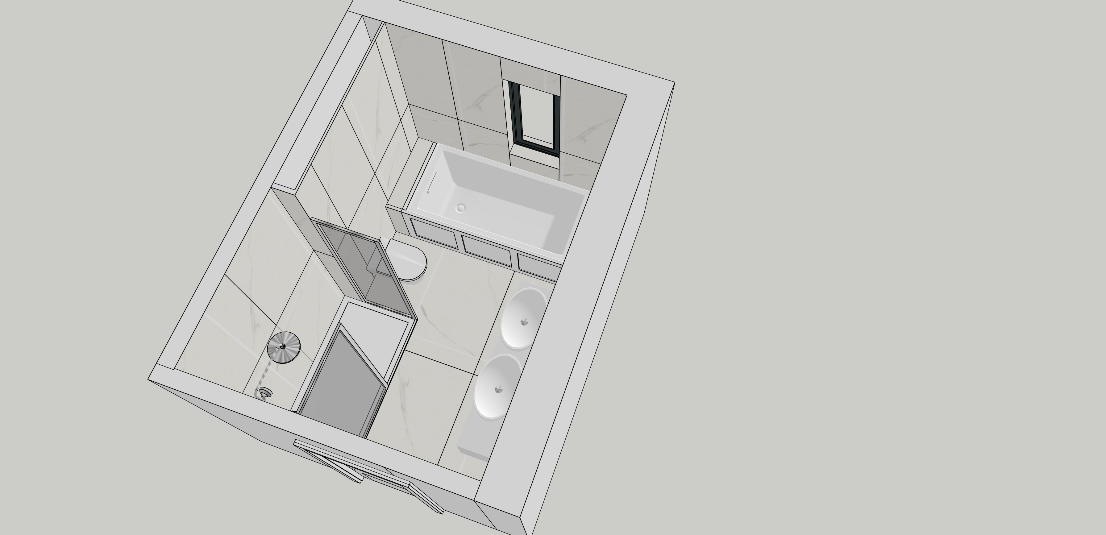 create a render in hyper realistic architectural visualization quality 8k resolution all objects furniture sanitary ware and architectural features must remain in place do not add any objects or delete anything from the image the spatial configuration must remain unchanged warmth gentle reflections soft shadows enhanced color richness and luxurious level realism improve depth and realism richness chrome highlights fabric texture and polished clarity while keeping the entire scene exactly as originally designed use general daylight lighting in the room use a smooth white wall surface above the tiles the wall covering should be the same light color as the floor covering