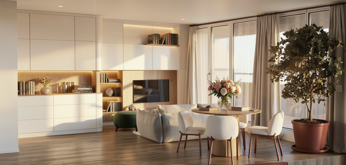 exterior shot can you add the painting from the second image to the back wall the darker one on right of the 3d model from the first image as if it were wallpaper don t decorate the space keep it the same also add on the middle wall decorative vertical wood wall panel in light oak