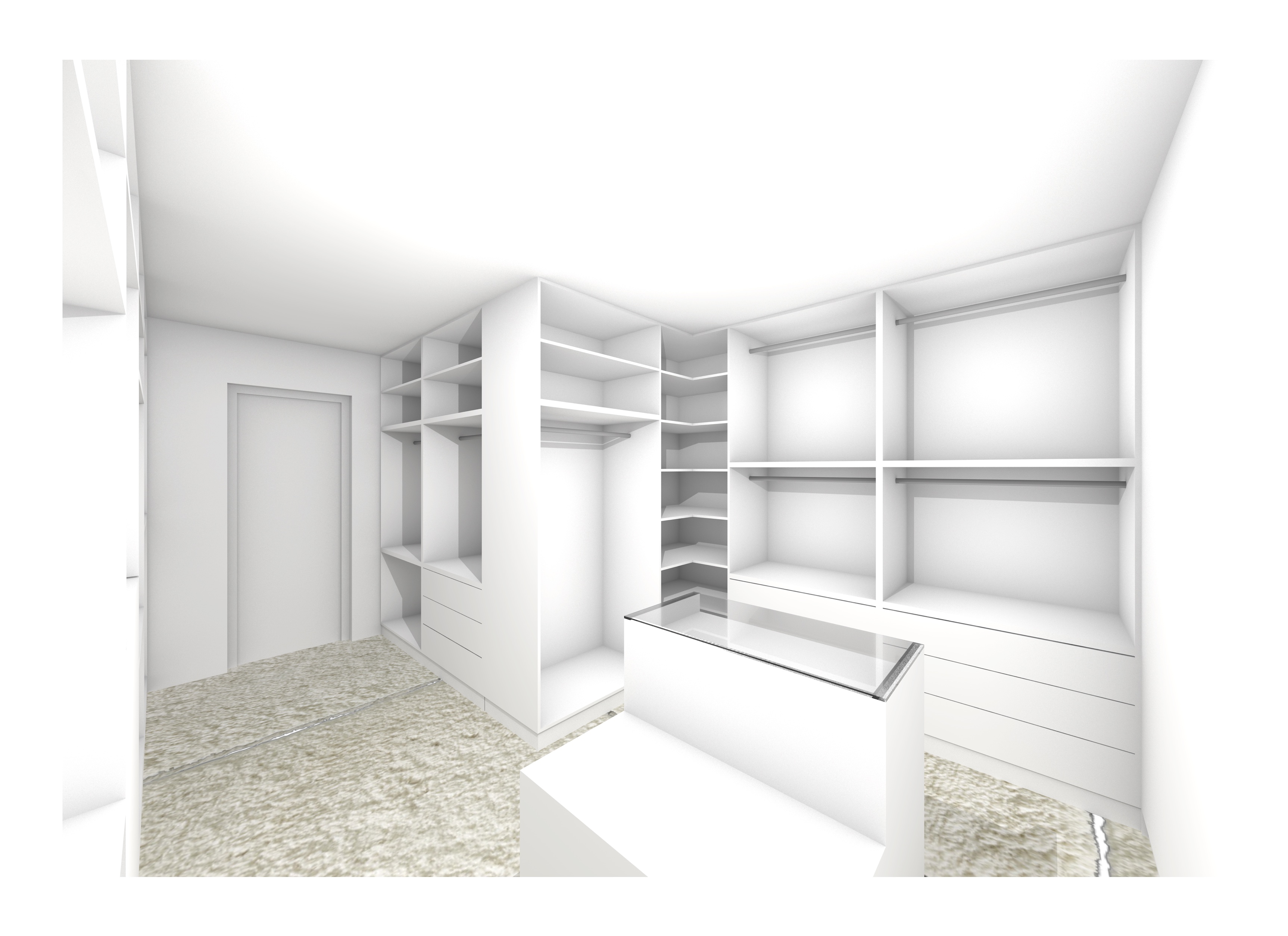 make it realistic add ceiling light and spot lights don t change the materials don t change the layout add base light and built in lights for every cabinets make the rug realistic rug covers the whole floor add one pillow to the top of the bench put clothes into the cabinets