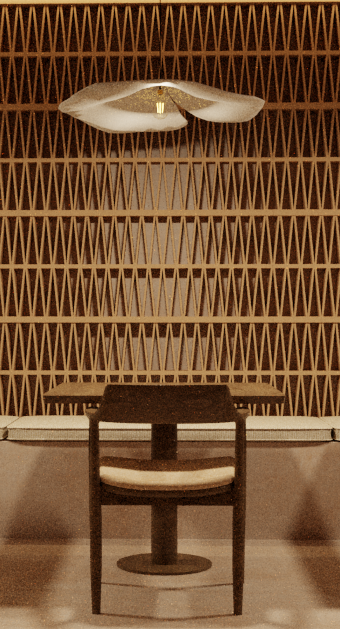 perfecto aqu la clave es justo lo que dices menos quir rgico y m s coherente con el prompt general pero manteniendo control te dejo una versi n simplificada potente y que no se va a romper ultra realistic interior render editorial quality keep the exact composition camera angle and design do not reinterpret the scene goal make the image highly photorealistic and editorial improving materials light and depth without changing the project materials walls beige interior clay stucco smooth and refined matte soft texture not rough not exterior lattice natural clay enhance depth joints and piece definition avoid flat look wood natural walnut matte visible grain subtle variation floor sand tone porcelain large format almost invisible joints lighting warm and consistent across all luminaires softer more atmospheric and realistic reduce flatness improve light falloff pendant lamp more realistic paper texture and soft light diffusion visible warm filament subtle vegetation keep same plants and composition improve realism color variation light reflection slight translucency avoid plastic or overly lush look geometry slightly soften and round edges walls furniture lattice avoid sharp cg edges keep everything subtle realism enhance contact shadows and ambient occlusion add micro imperfections in materials remove noise grain avoid perfectly clean or artificial look final look high end editorial interior photography warm tactile natural and believable no cgi appearance