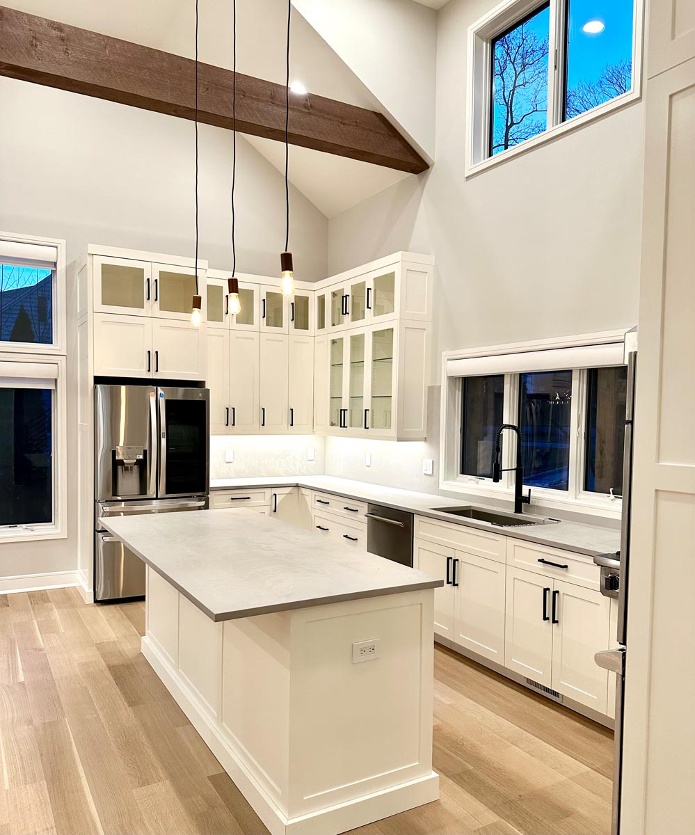add people around the island with food on the counter