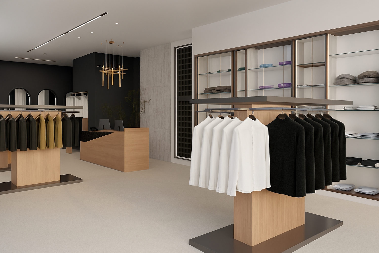 a cozy modern interior with a minimalist design featuring a smoothing palette of soft tones the room is bathed in natural light illuminating a sleek white kitchenette a textured muted gray sofa adds comfort next to a stylish glass top coffee table with a black lattice frame elegant wooden stairs ascend with a modern flair while the adjacent bar area hosts a simple white counter with wireframe stools the floor has a cement mortar soft grey effect the walls are painted with white stucco the wall look like old the atmosphere is serene combining elegance with a touch of nature