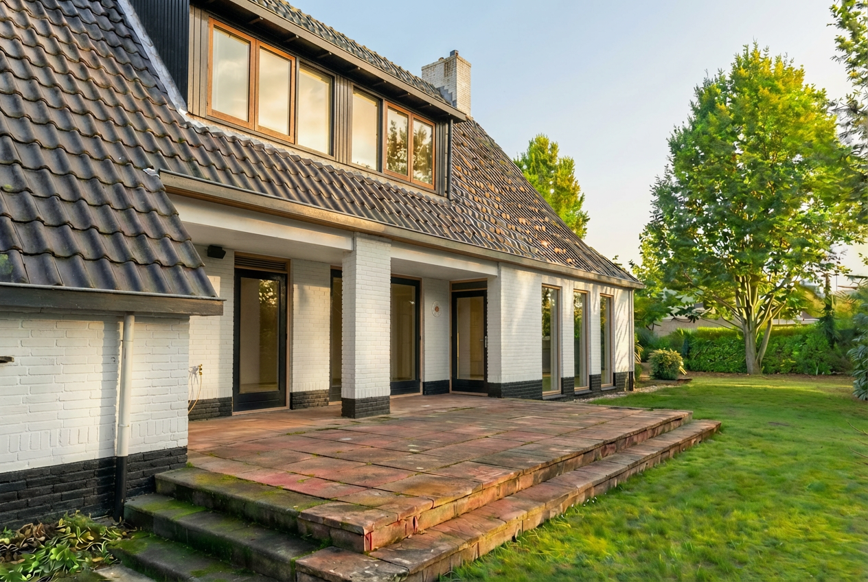 make the fascia board black and just slightly thicker towards the ground