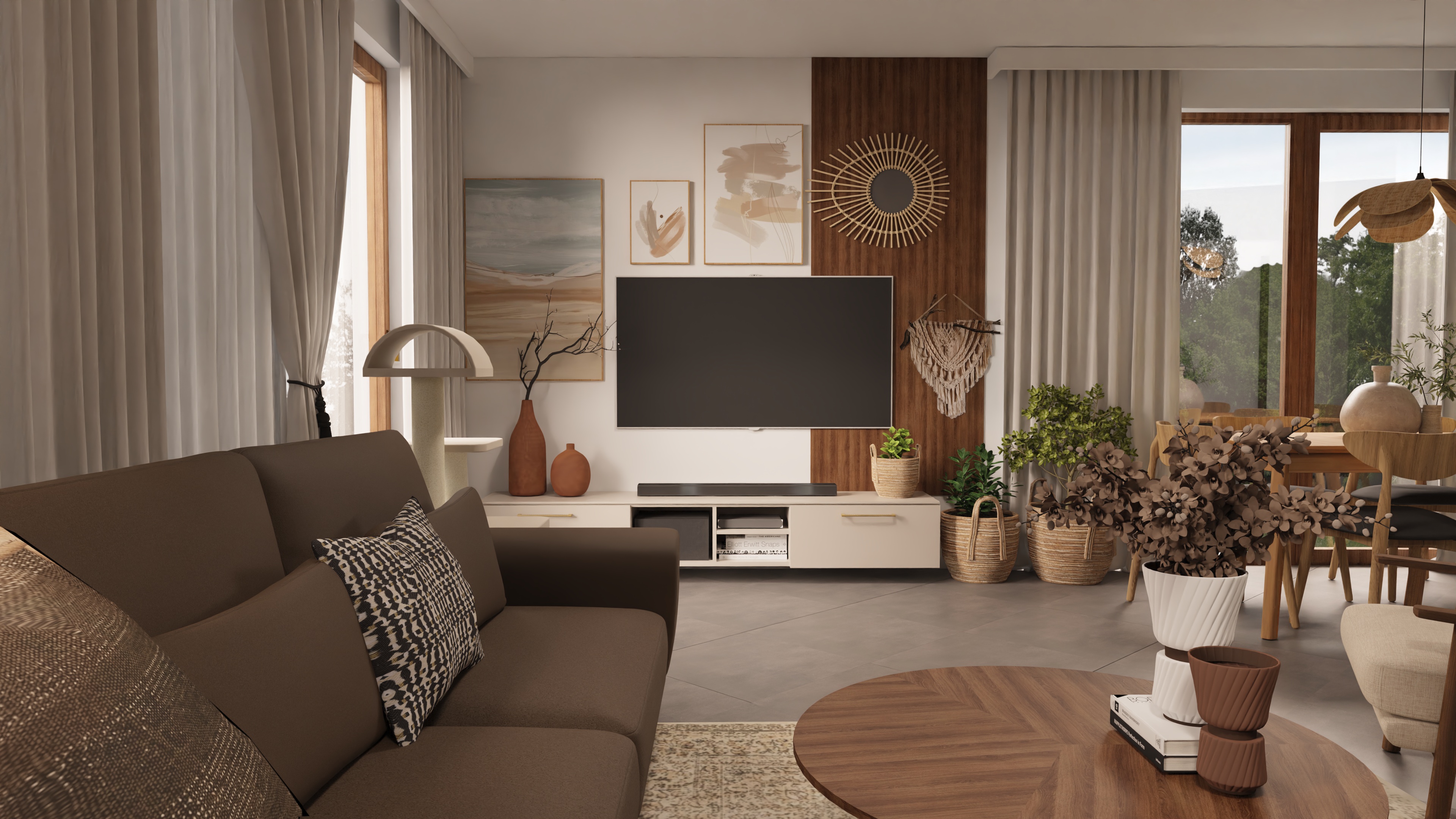 transform this picture into a realistic interior visualization with natural light keep the camera angle keep the original materials and textures make it an ultradetailed view with global illumination and photo based rendering materials