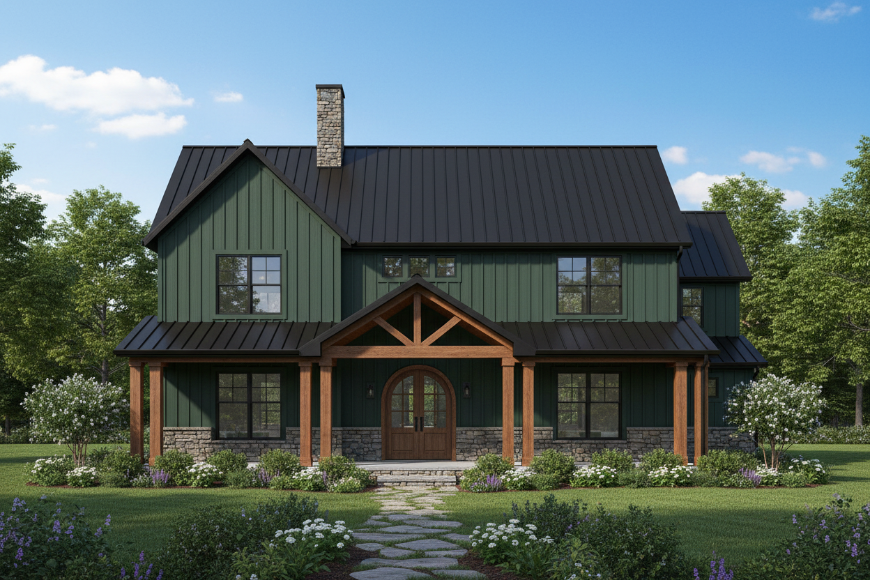 make realistic model to size with dark green house and black tin roof