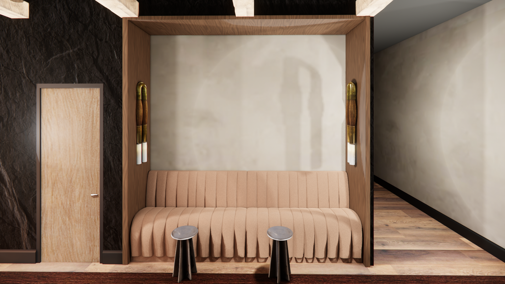 adjust the lighting to look more realistic and make the sofa to be an aged rustic leather without changing the shape