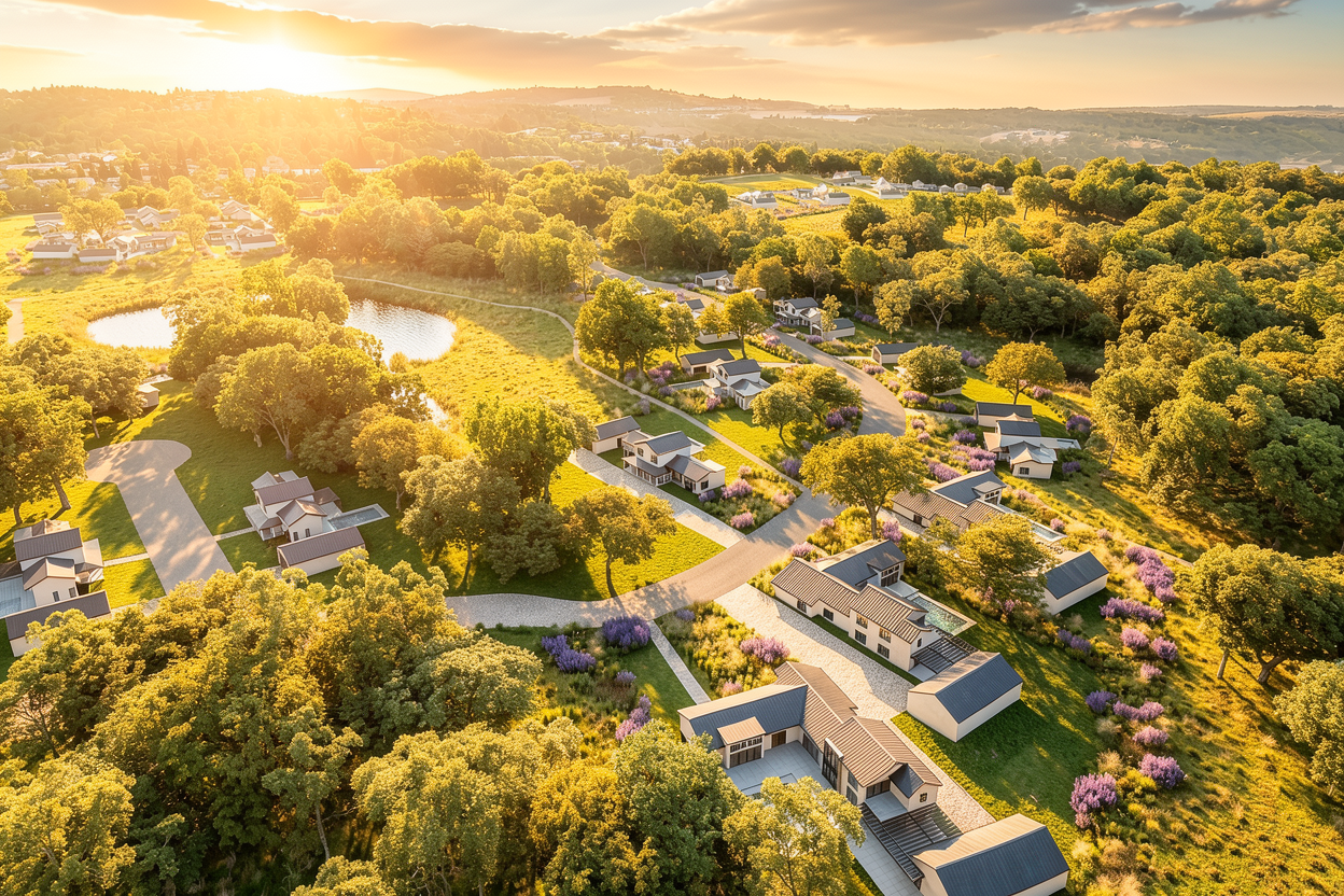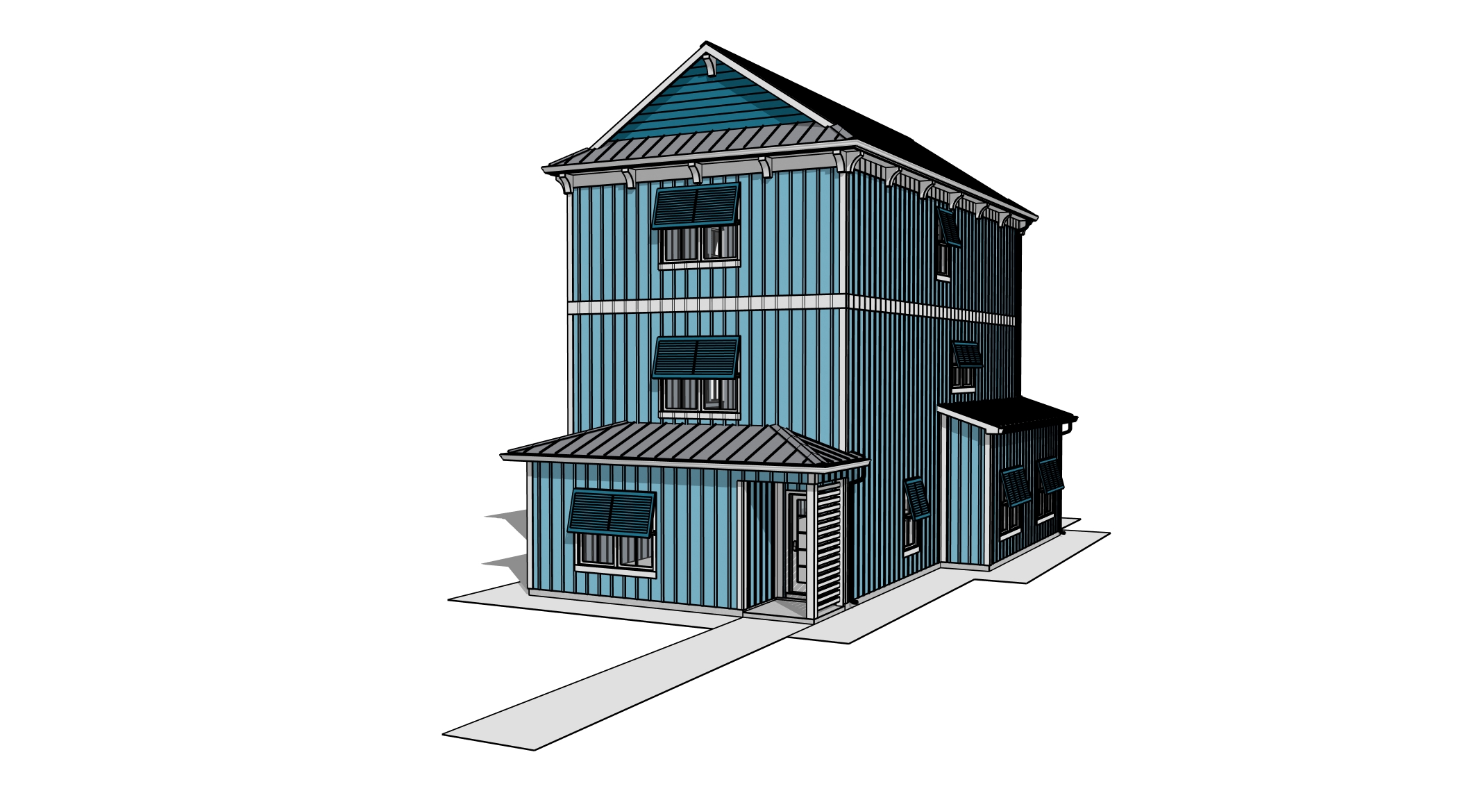 create a realistic day time image using sharp details nature lighting and soft shadows use tropical landscaping found in the ozarks region of the usa use a hardwood forest in background add a sidewalk from the front door use existing colors and siding materials from reference image
