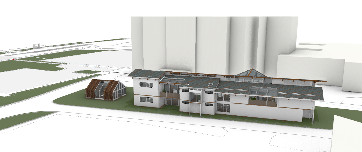 add trees on the green area and some people add a parking lot in the front