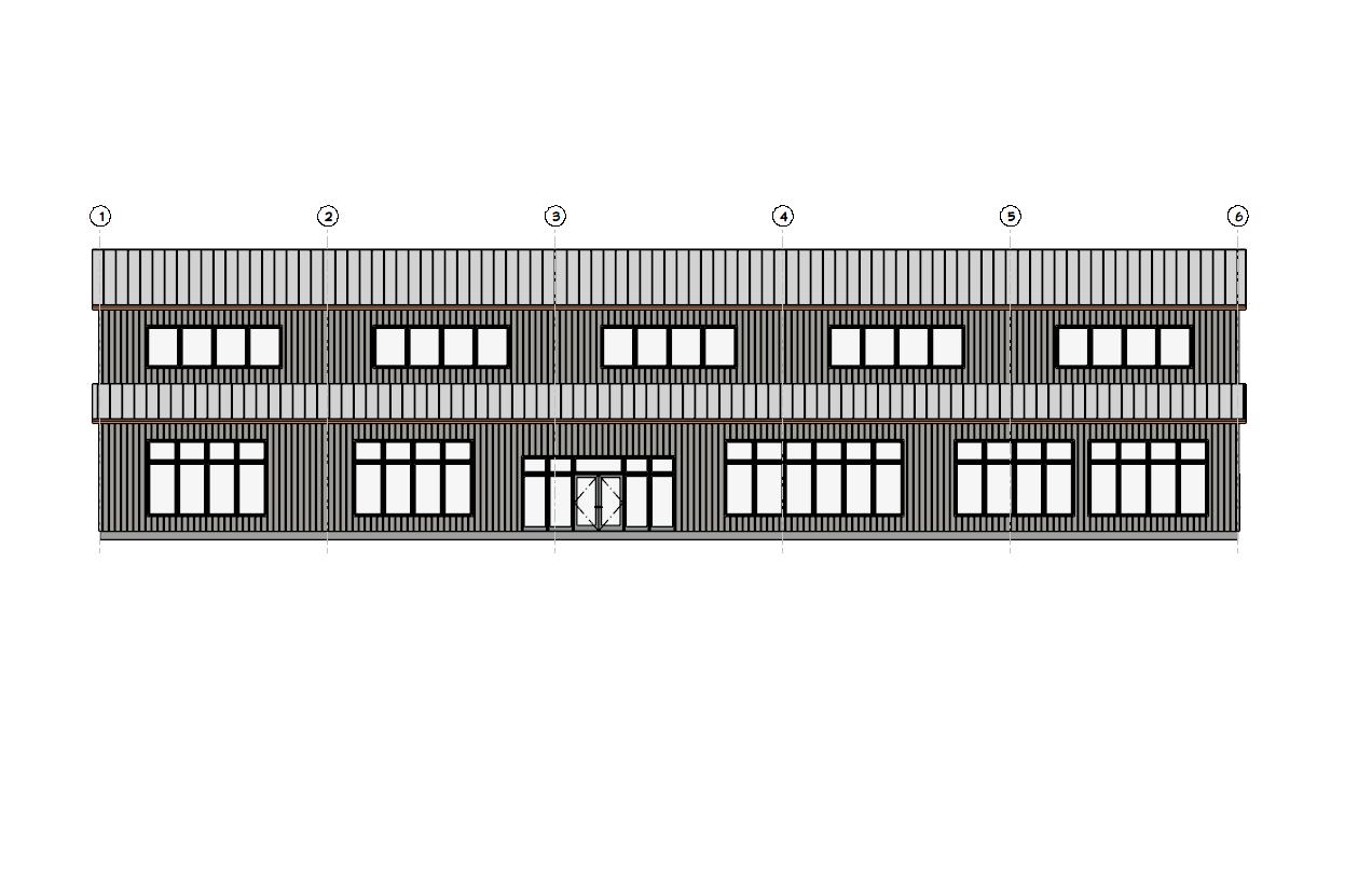 modern commercial style using a combination of cedar colored trim dark grey architectural steel siding wood ascent panels and larger flat panels