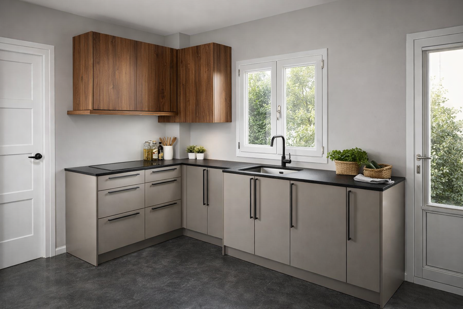 a ade un estante con decoraci n cocina a la derecha de la ventana