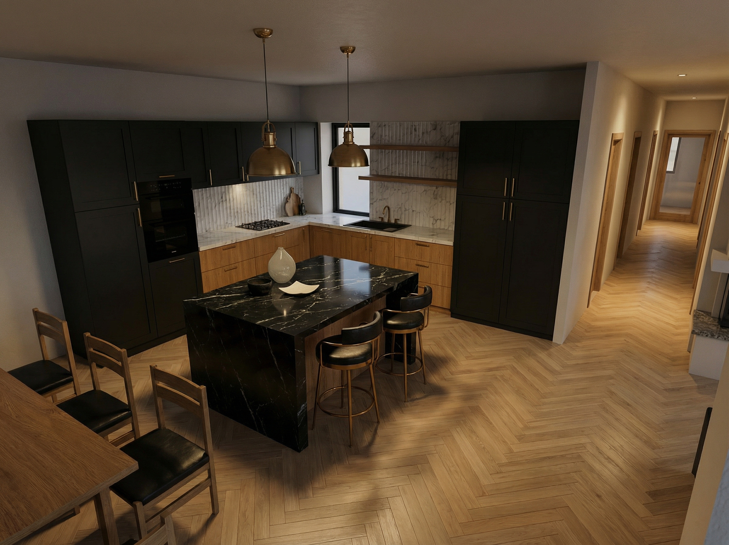 put a a light colored plush luxurious beni oren rug into the dining table and chairs
