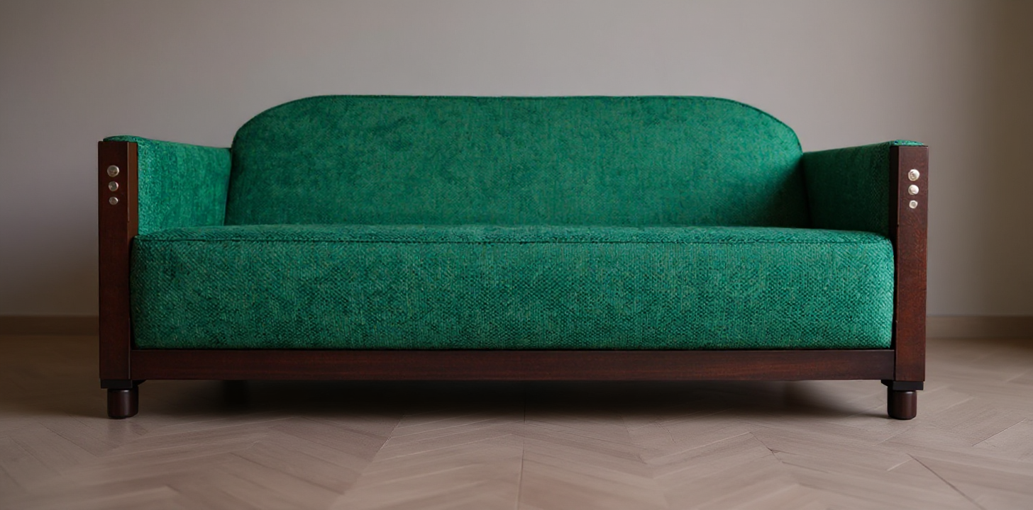interior shot use the colors dark blue soft green beige also cognac leather items the floor is made of wood