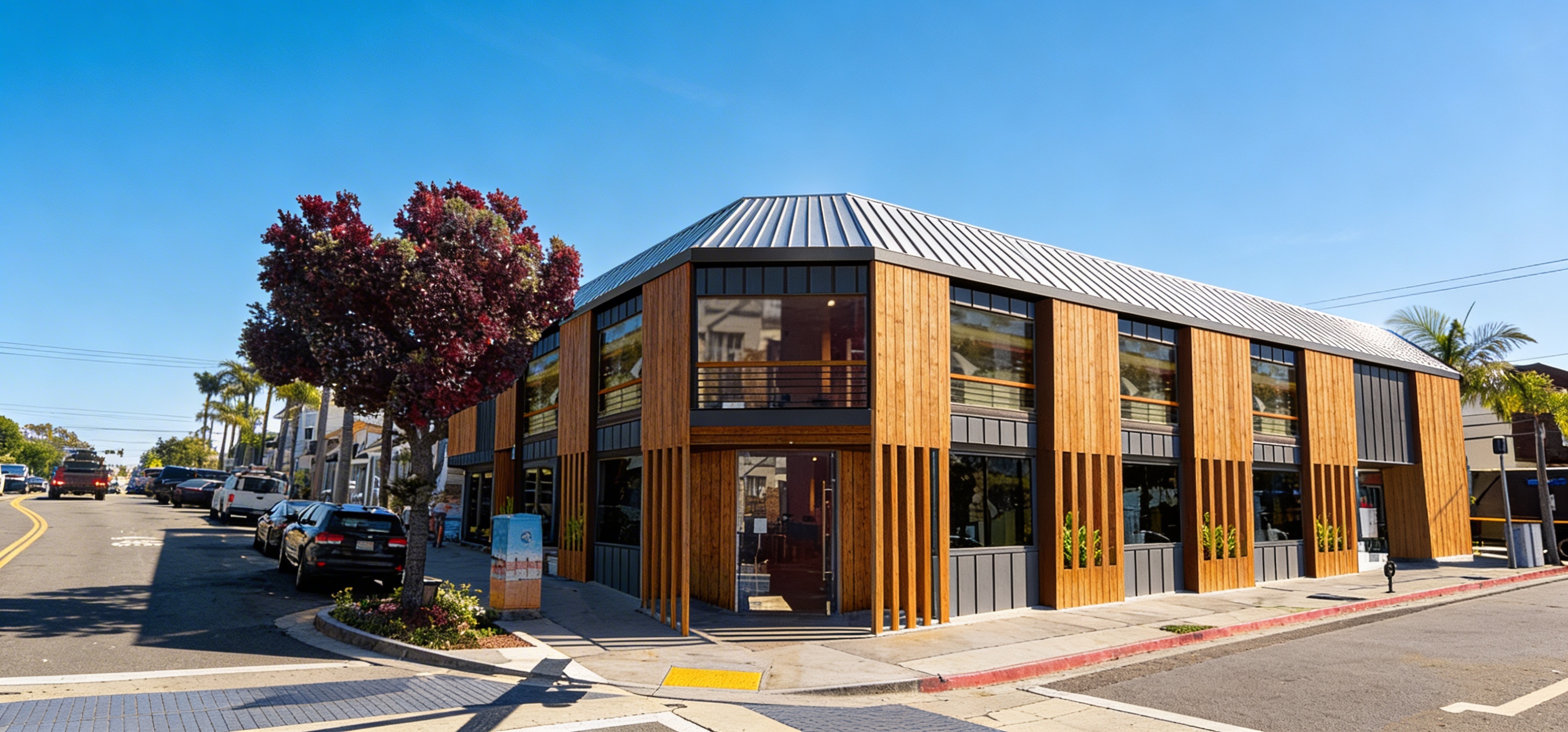 please change the lighting to early evenign with some light still in the sky illuminate the windows with warm interior lighting