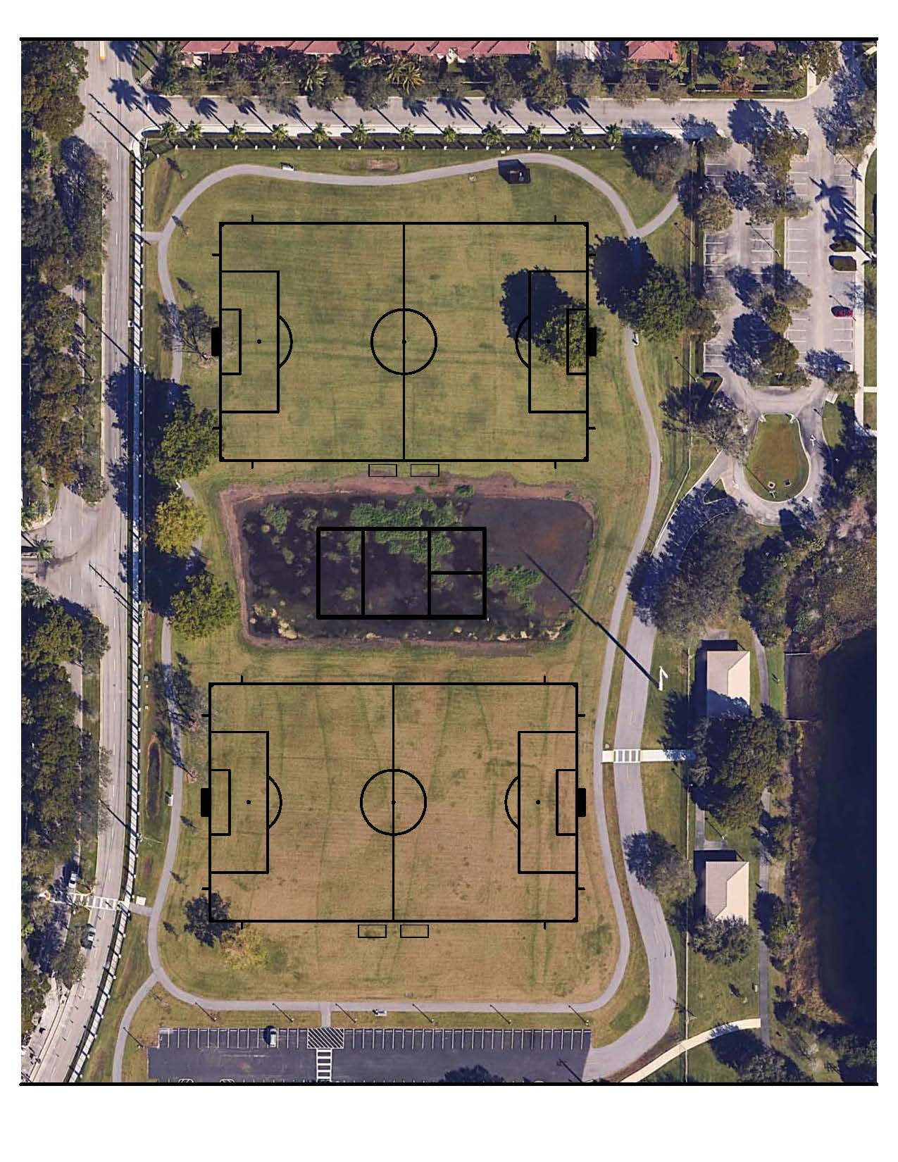 exterior shot two soccer fields concession stand locker rooms for boys and girls office bathrooms in between the fileds