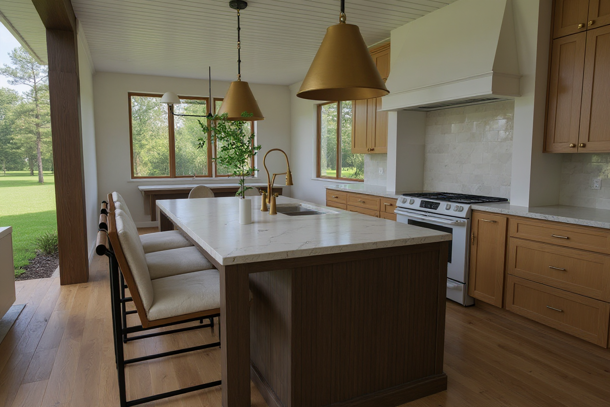 night view of modern mid century modern house with corrugated metal siding and wood accents