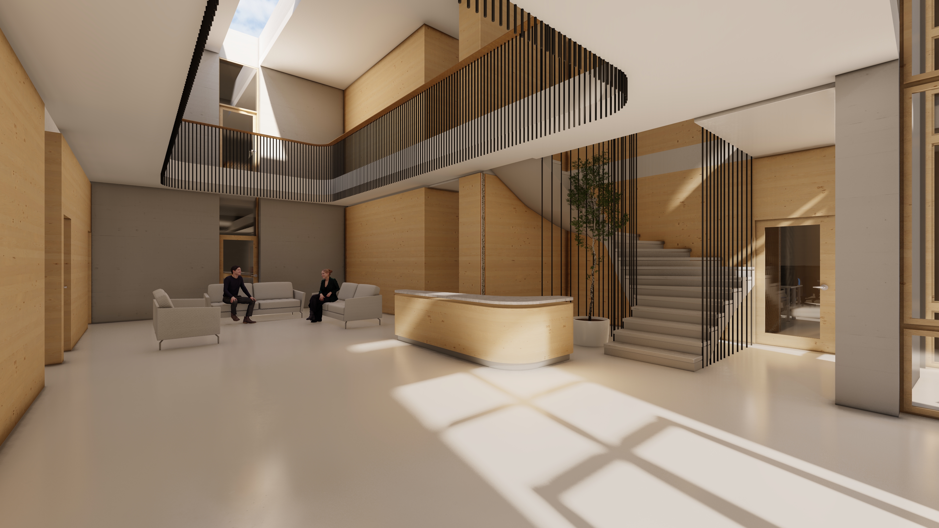 zaha hadid night shot interior ilumination people walking interior design plants and vegetation warm lights down cold lights up architecture